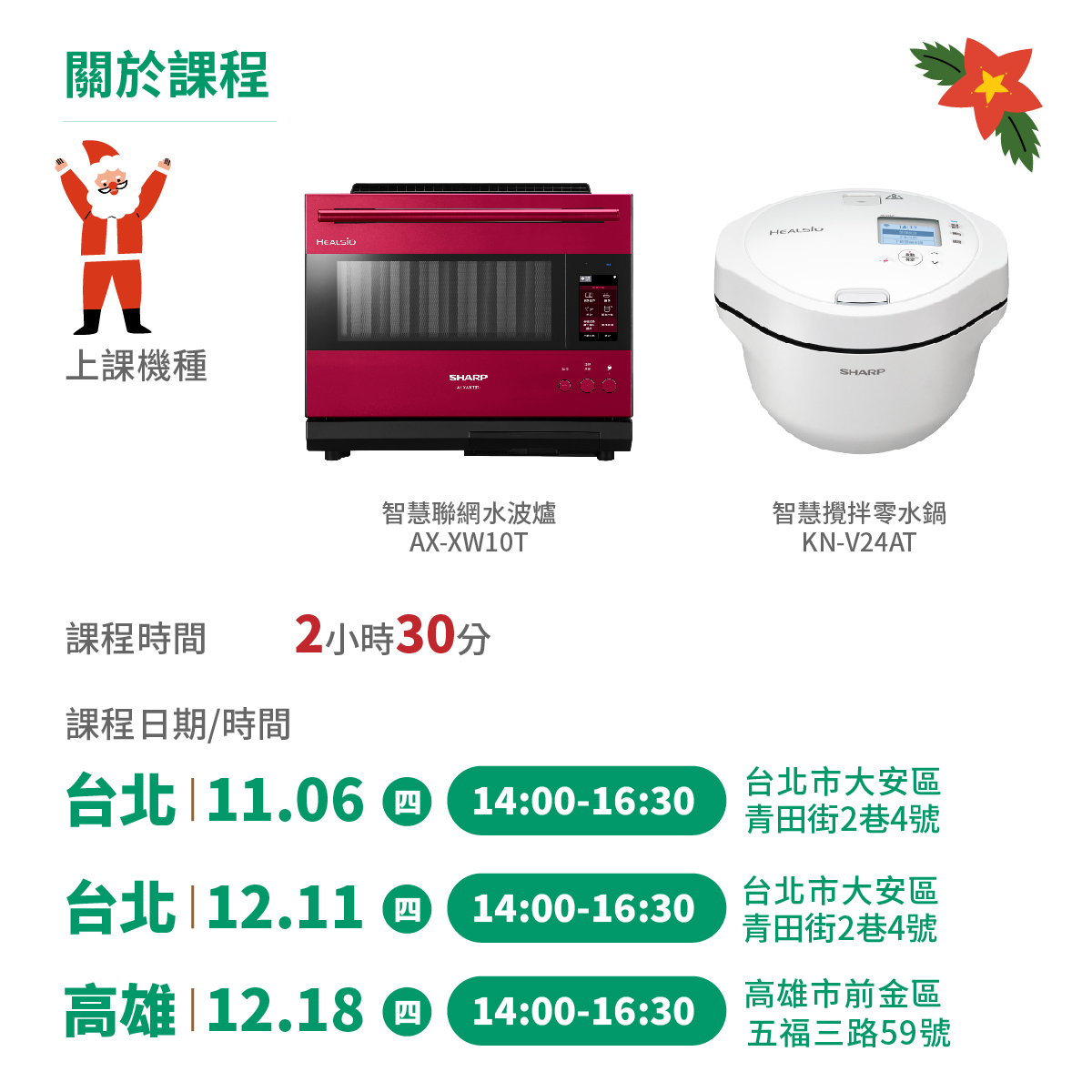 夏普廚藝教室【台北12/11】聖誕節特別課程 -水波爐/零水鍋體驗專用券