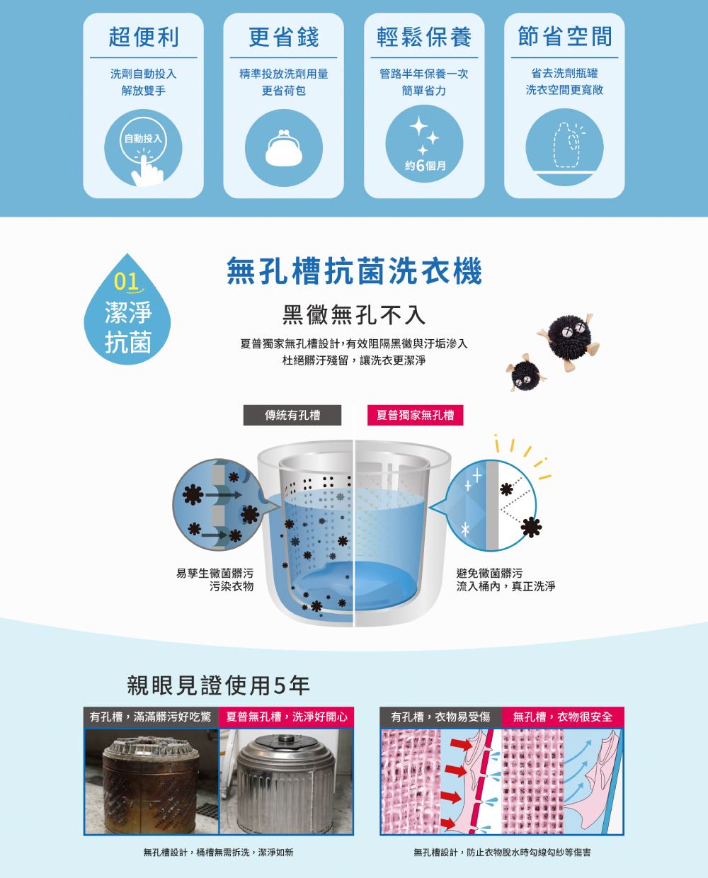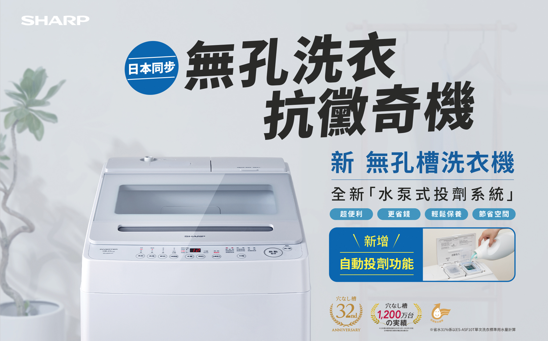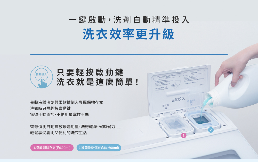 • 新增自動投劑功能,洗衣更輕鬆