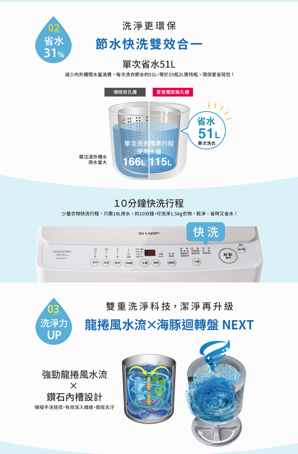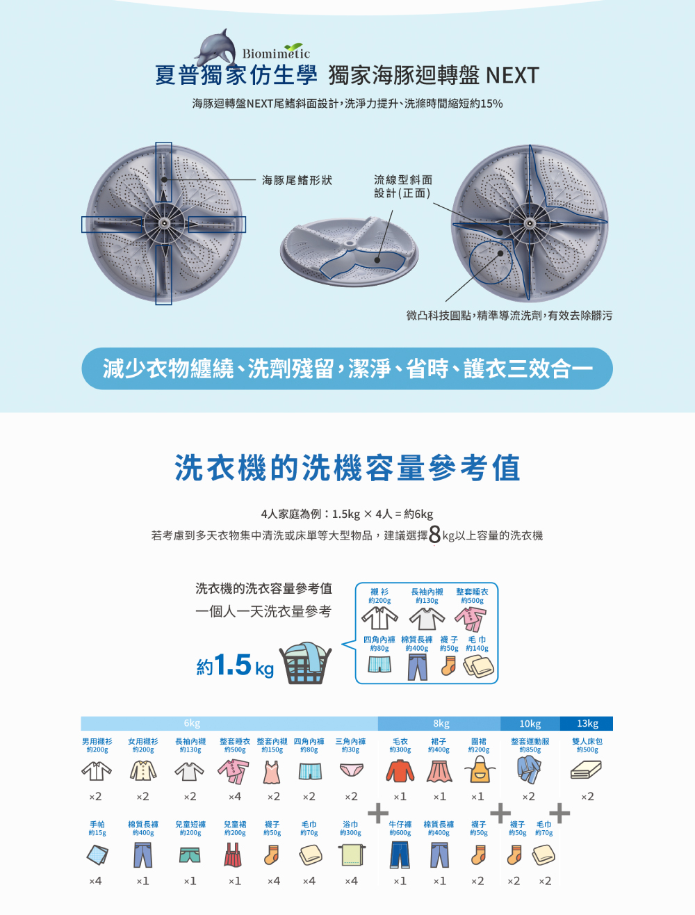 • 海豚迴轉盤NEXT,強勁水流,縮短15%洗衣時間