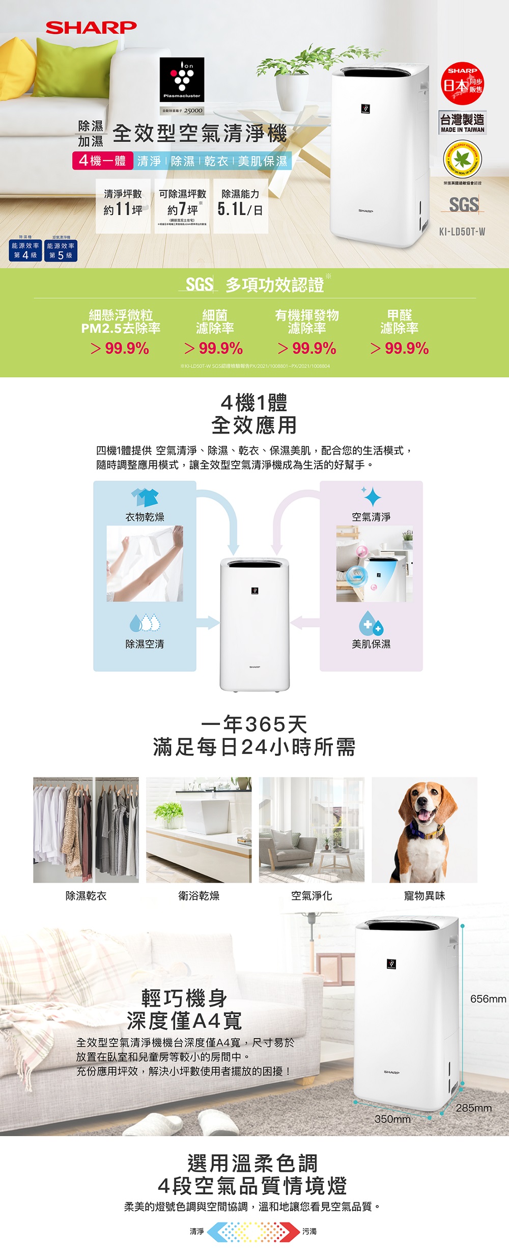 • 水活力增強空氣清淨 / 空氣清淨 / 除溼空清 / 衣類乾燥 四大運行模式